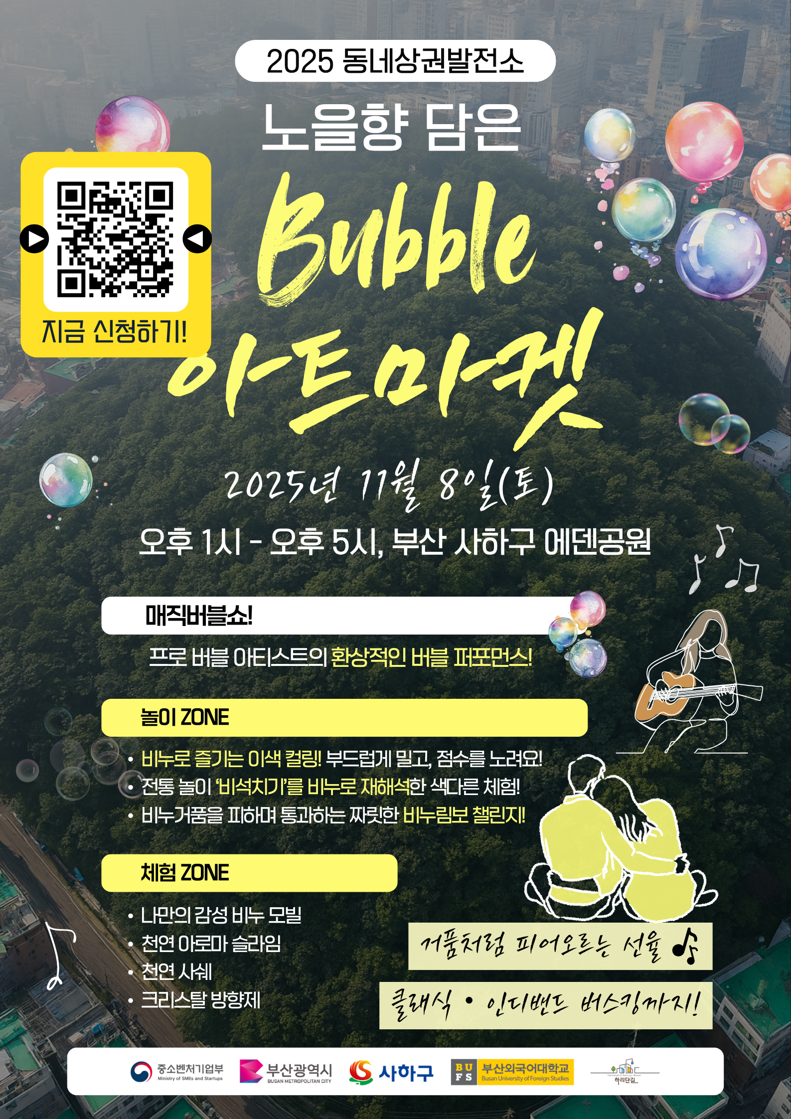 부산 사하구 에덴공원이 하루 동안 반짝이는 버블 아트 마켓으로 변합니다. 🌇
