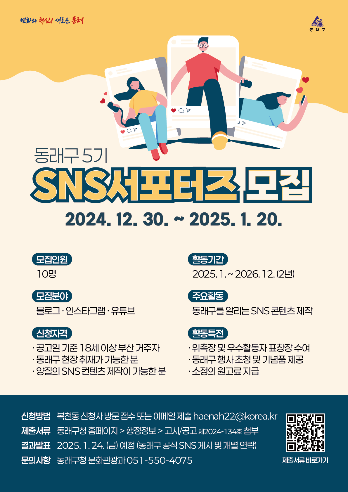 《동래구 SNS서포터즈 5기》 모집에 많은 신청 바랍니다.